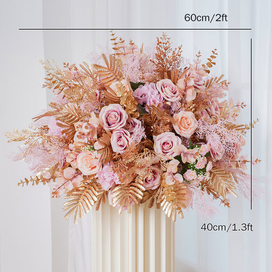 Golden Leaves Pink Rose Wedding Decor,Table Centerpiece